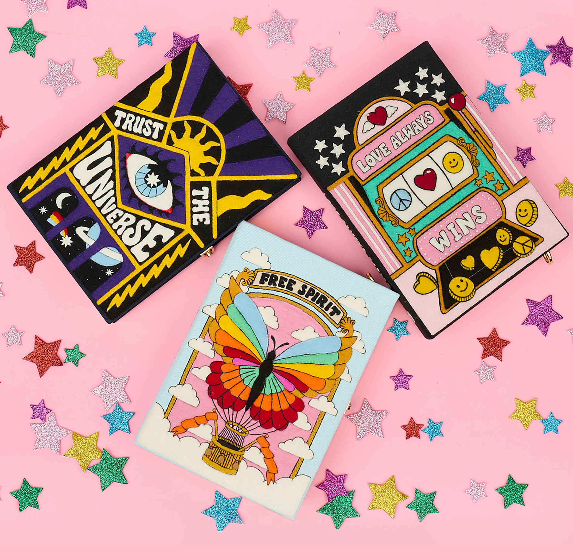 Retro maximalist designs created for The London Studio's 'Dreamadelic' range transformed into beautiful hand-embroidered bags by the Parisian fashion brand Olympia Le Tan